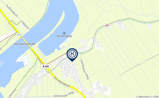 Die Pension liegt in der Nähe der Mündung der Stör in die Elbe und eignet sich als Ausgangspunkt für Aufenthalte in der Region.