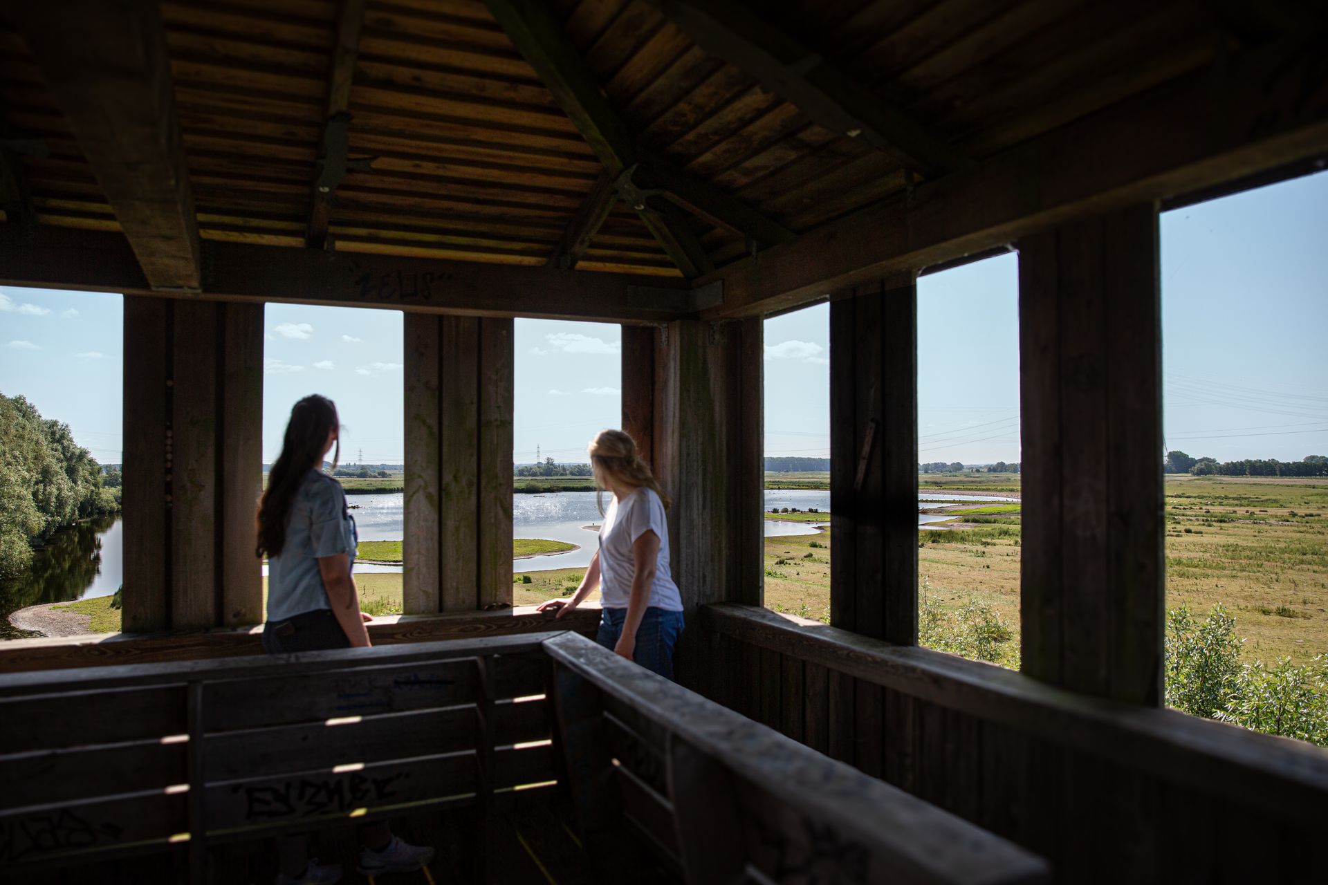 Von der Aussichtsplattform des 11,5 Meter hohen Beobachtungsturm des NABU hast du einen wunderbaren Blick über die Haseldorfer Marsch mitsamt ihren Prielen sowie auf die Elbe bis hinüber nach Lühesand. Viele Wasservögel wie Gänse, Enten und Reiher können hier beobachtet werden. Ein schmaler Pfad führt dich zum Turm, der geschickt mit Büschen bepflanzt ist, um die Vögel nicht zu stören und gleichzeitig eine ungestörte Aussicht zu bieten.