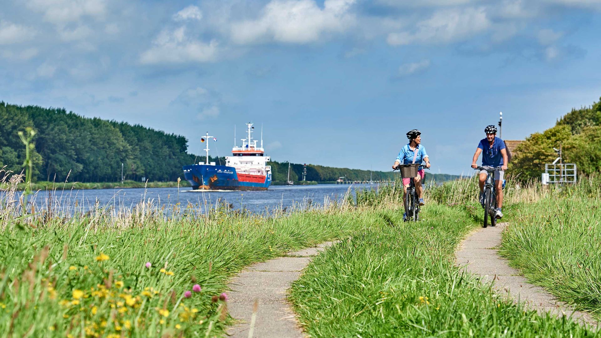 Bei der Fahrt entlang des Nord-Ostsee-Kanals können große und kleine Pötte beobachtet werden. An der Geestkante liegt der Ort Kuden und entzückt mit seinen alten Bauerhäusern.